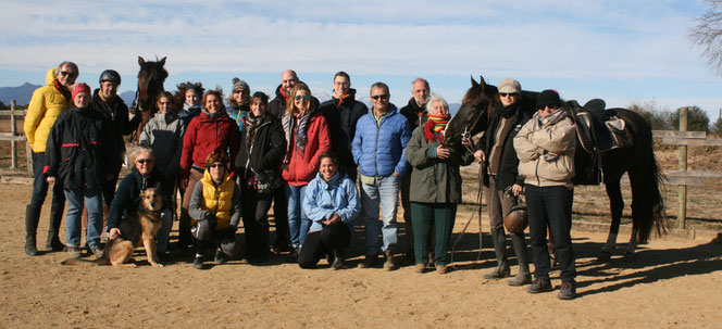 Sábado 5 de abril: Por la mañana trabajo por parte de Elisabeth de Corbigny con los caballos asistentes al clínic, por la tarde doble sessión de trabajo con caballos y jinetes