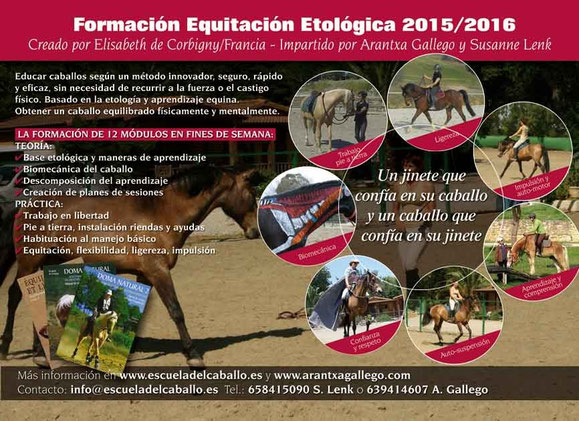 Susanne Lenk es Técnico deportivo en equitación y Certificada en la Formación Profesional de Equitación Etológica por Elisabeth de Corbigny. También se formó en la Escuela de Osteopatía equina y canina “Welter-Böller” en Alemania.