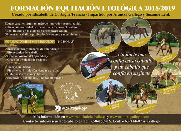 Susanne Lenk es Técnico deportivo en equitación y Certificada en la Formación Profesional de Equitación Etológica por Elisabeth de Corbigny. También se formó en la Escuela de Osteopatía equina y canina “Welter-Böller” en Alemania.